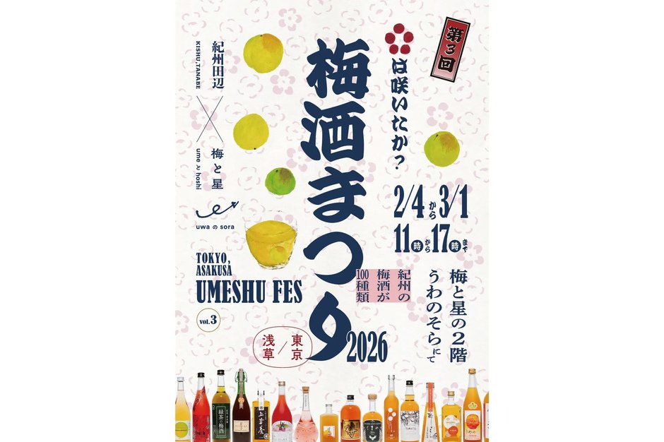 和歌山県の絶品梅酒100種類を楽しむ『紀州の梅酒まつり2026』が今年も浅草の梅と星で開催!