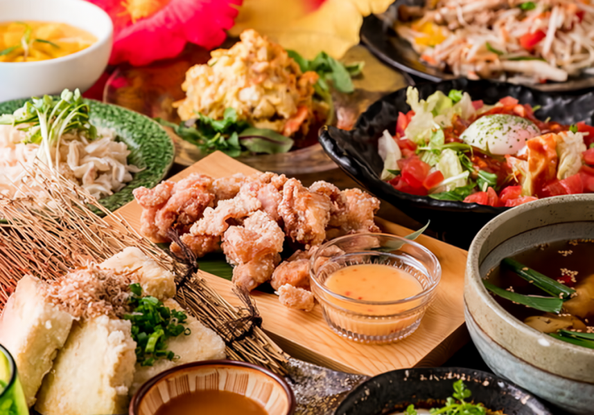 誕生日や記念日、大切な集まりには、琉歌の個室や宴会コースがおすすめです。見た目も豪華な沖縄料理のフルコースは、パーティーを盛り上げること間違いなし。最大人数に合わせたお席の用意や、飲み放題プランも充実しています。人気のお席は早めの予約が必要ですので、大切な日にはぜひ、お電話または店頭でご予約ください。