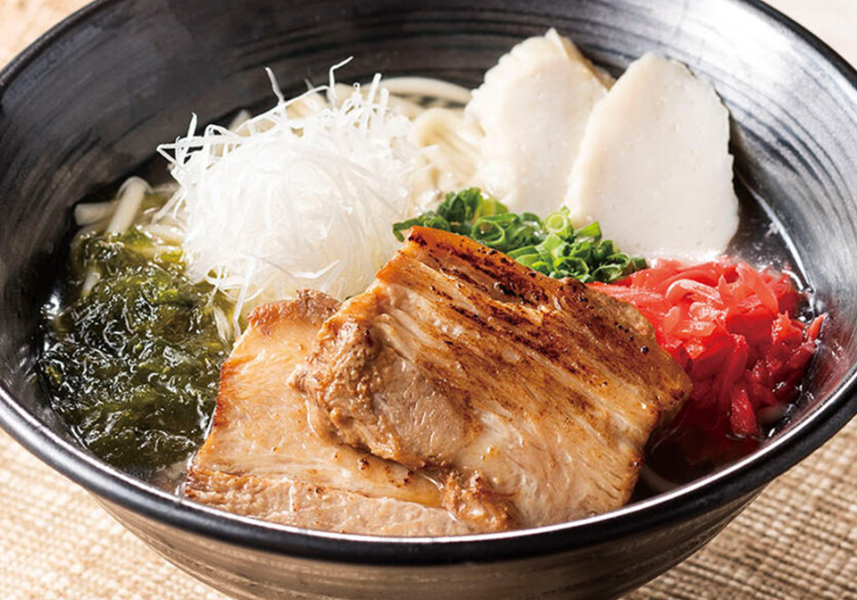 数あるメニューの中でも、まず味わっていただきたいのが「ラフテー(豚の角煮)」。時間をかけてじっくりと煮込まれた三枚肉は、箸で簡単に切れるほど柔らかく、口の中でとろけるような食感が特徴です。泡盛のコクと黒糖の優しい甘みが肉の旨味を引き立て、一度食べたら忘れられない芸術的な味わいです。