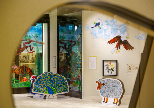 「ディスカバリーゾーン」には、エリック・カールが描いた鮮やかな色彩の生きものたちが集まる他、本物の昆虫の標本の展示も。さまざまな仕掛けが施されており、発見する楽しさが散りばめられています。