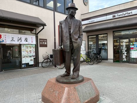 柴又駅を出ると、すぐ目に飛び込んできたのが、トランクを持った寅さんの銅像。「ここで写真を撮らないと柴又に来た意味がないよ」と、通りすがりのご夫婦が教えてくれました。確かに、多くの観光客がこの銅像と一緒に記念撮影を楽しんでいます。