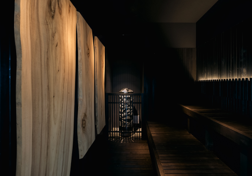 男性フロアには、直線的なデザインと寒色照明で知的な刺激を与える「左室」、丸みを帯びた内装と暖色系の照明で心安らぐ「右室」、そして仲間と賑やかに楽しめる「ナ室」の3種類のサウナがあり、「左室」と「右室」にはオートロウリュウを完備、「ナ室」ではセルフロウリュをお楽しみいただけます。